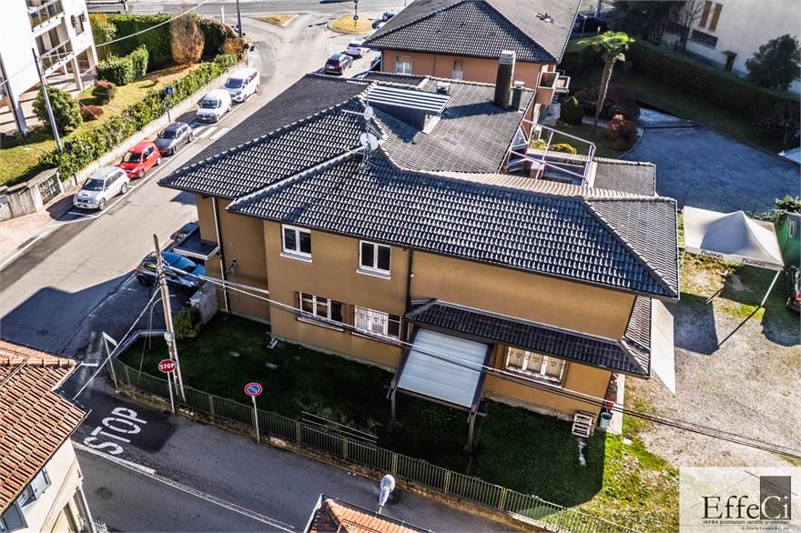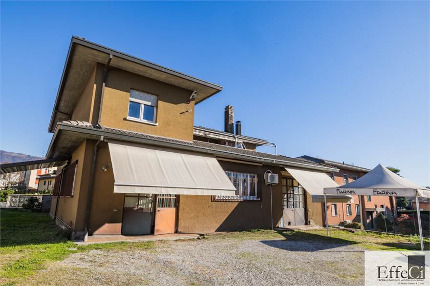 Nel centro del Paese e vicino a tutti i principali servizi ed alla line ferroviaria, immobile indipendente disposto su due livelli oltre il piano interrato e composto al piano terra da ampio negozio con vetrine e parcheggio auto privato, laboratorio con spazio lavoro con accesso ad area esterna privata, disimpegno e bagno. Al piano primo ed ultimo, con accesso indipendente, si trova la parte abitativa composta attualmente da due appartamenti: ingresso, soggiorno con camino ed accesso al terrazzo di 50 mq. circa con zona barbeque attrezzata, cucina abitabile, disimpegno, bagno, camera matrimoniale con bagno, altra camera. Dal soggiorno si accede al piano mansardato dove si troviamo un locale da adibire a studio/locale hobby; soggiorno, cucinotto, disimpegno, due camere e bagno. Le due unità immobiliari possono essere unificate facilmente creando un fruibile attico con ampia zona giorno, quattro camere, tre bagni, studio e ripostiglio.