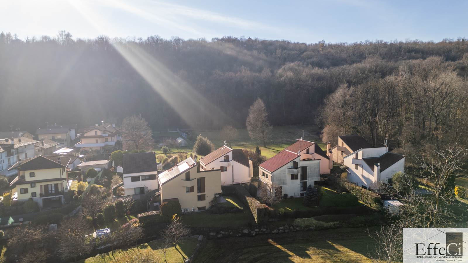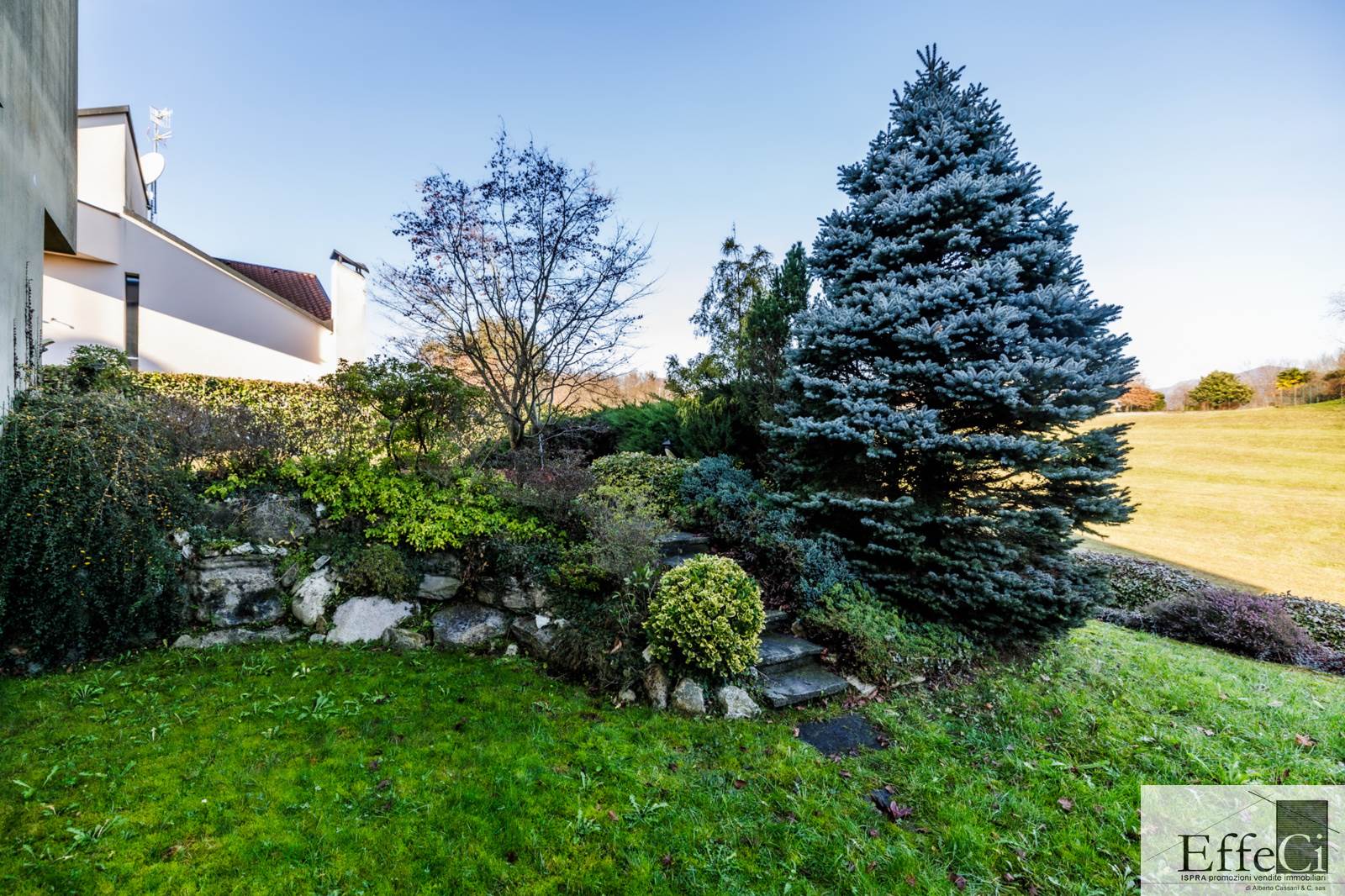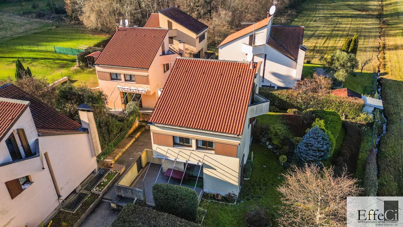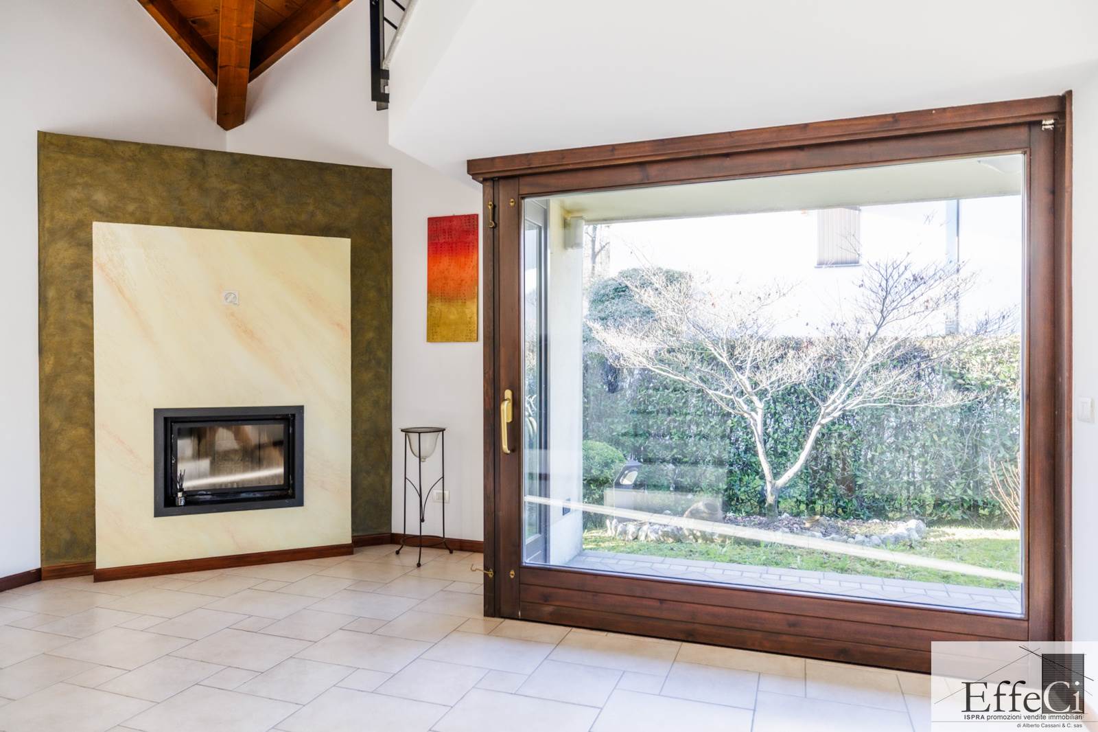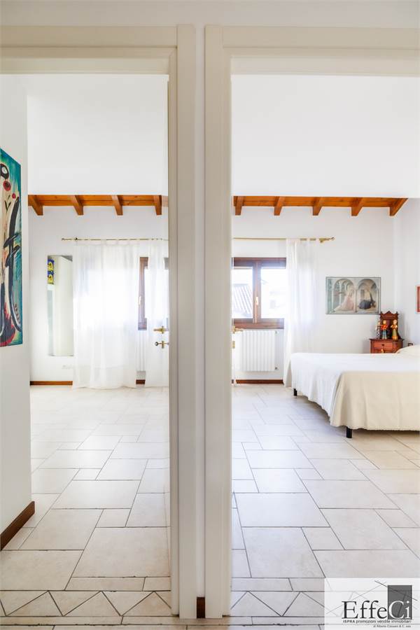 In zona verde e residenziale, vicino ai principali servizi, particolare e moderna villa indipendente con giardino privato, inserita in piccolo contesto immobiliare, disposta su piani ammezzati e composta da ingresso, sala da pranzo con accesso al patio, cucina, salotto con travi a vista, camino e portico, due camere matrimoniali di cui una con cabina armadio, soppalco utilizzabile come studio/camera, ampia camera con travi a vista, wc e due balconi. Al piano seminterrato taverna con cucina a vista, bagno, locale caldaia/lavanderia ed accesso diretto all'autorimessa. L'immobile nella sua tipicità si trova in buone condizioni con serramenti in legno con vetrocamera doppia, rivestimenti in ceramica, impianto di allarme e teda sole automatizzata. Il giardino è ben piantumato e godibile. Area verde comune adibita a parcheggio.