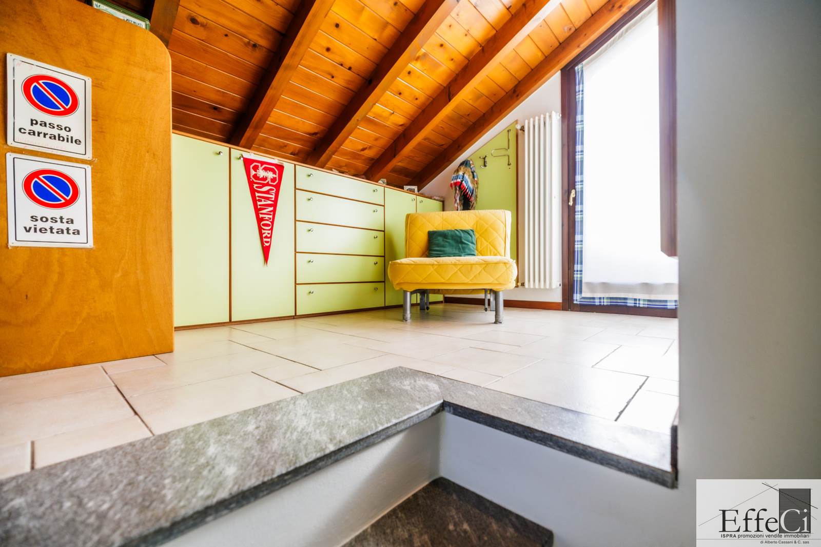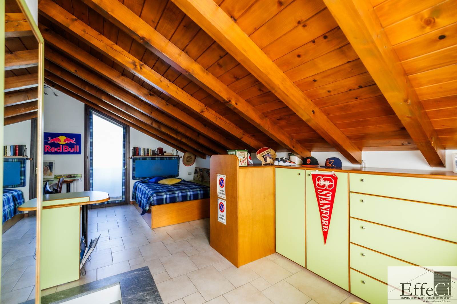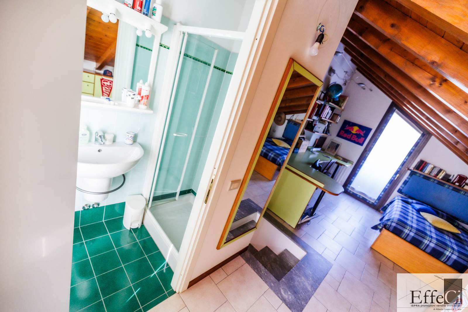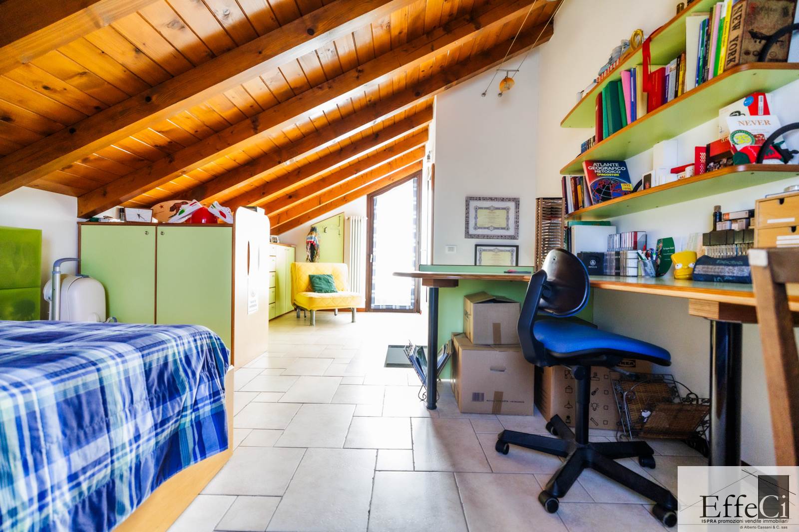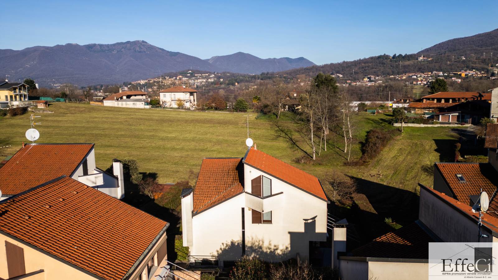 In zona verde e residenziale, vicino ai principali servizi, particolare e moderna villa indipendente con giardino privato, inserita in piccolo contesto immobiliare, disposta su piani ammezzati e composta da ingresso, sala da pranzo con accesso al patio, cucina, salotto con travi a vista, camino e portico, due camere matrimoniali di cui una con cabina armadio, soppalco utilizzabile come studio/camera, ampia camera con travi a vista, wc e due balconi. Al piano seminterrato taverna con cucina a vista, bagno, locale caldaia/lavanderia ed accesso diretto all'autorimessa. L'immobile nella sua tipicità si trova in buone condizioni con serramenti in legno con vetrocamera doppia, rivestimenti in ceramica, impianto di allarme e teda sole automatizzata. Il giardino è ben piantumato e godibile. Area verde comune adibita a parcheggio.