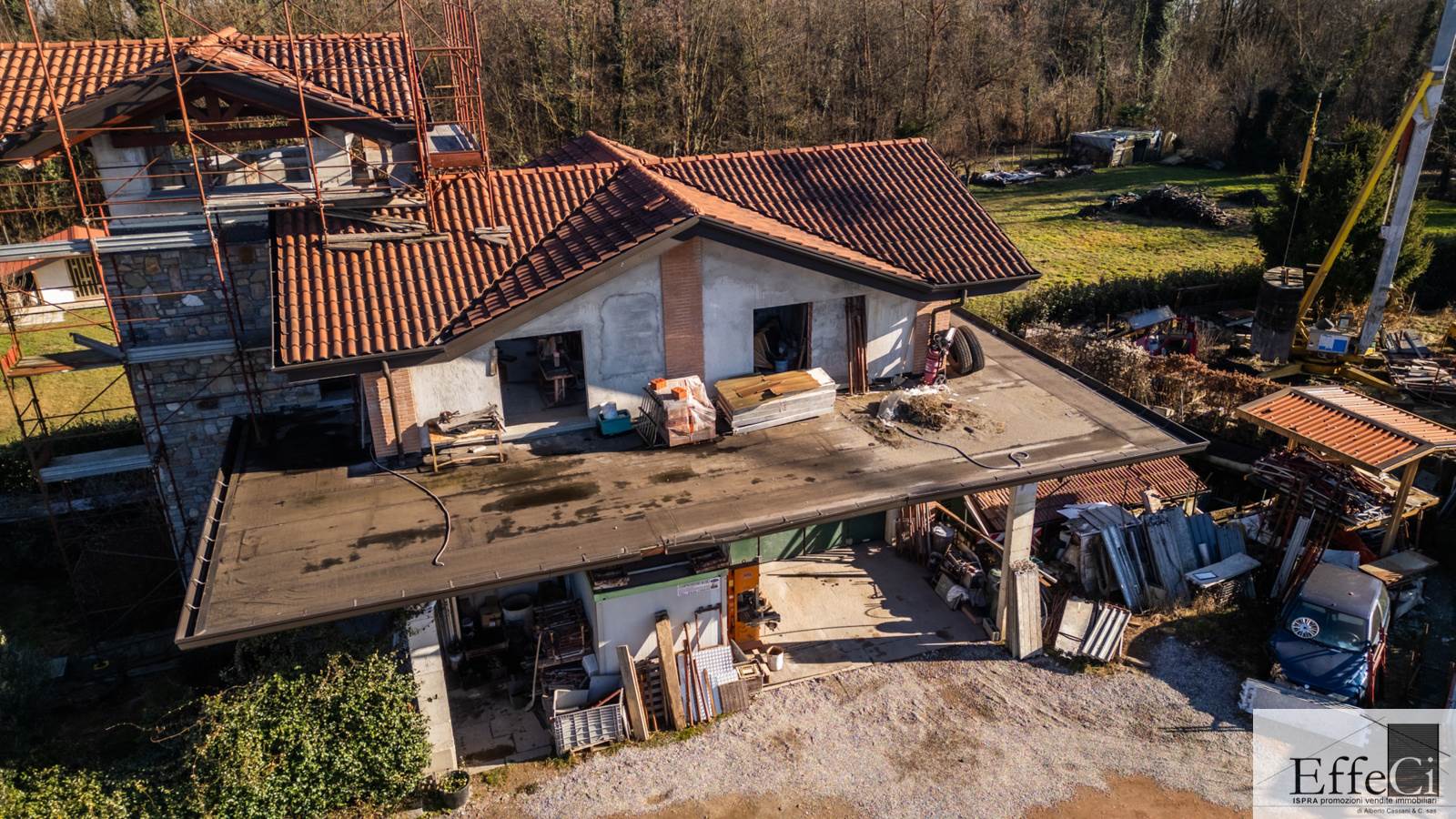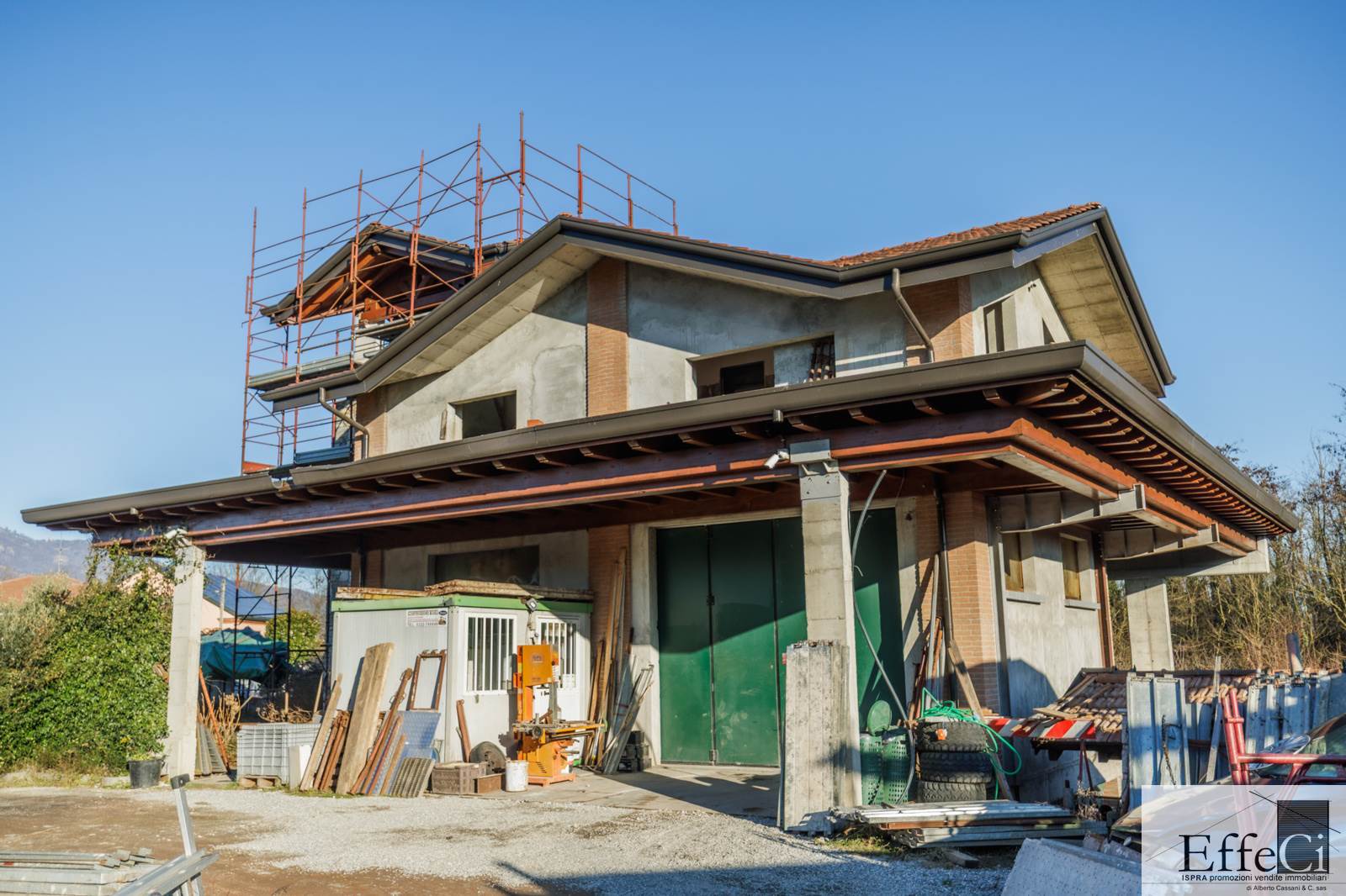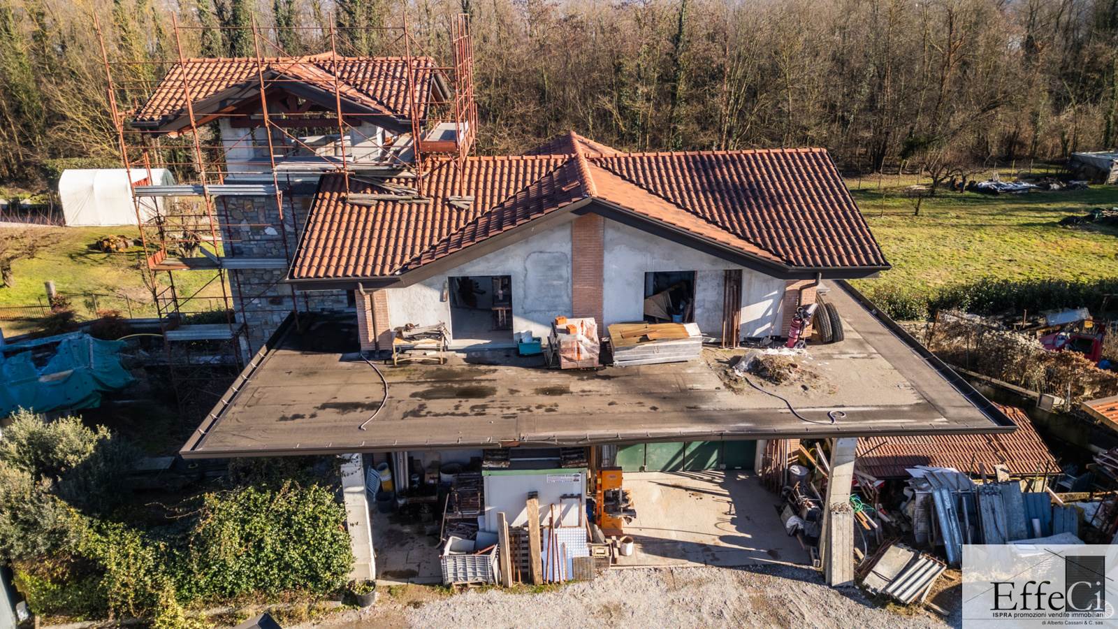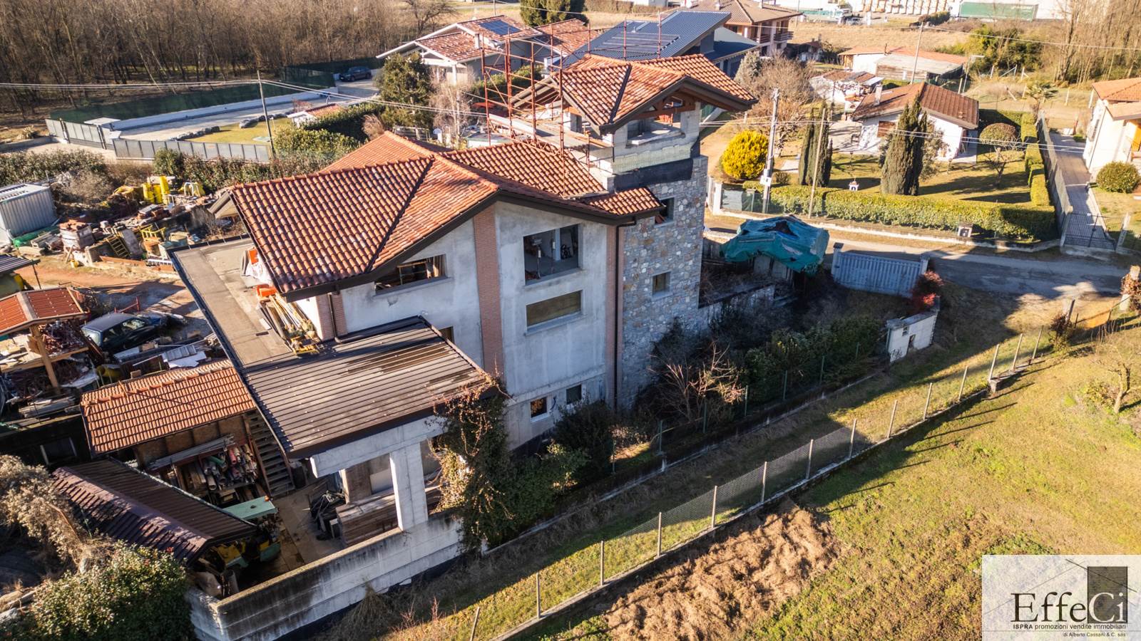 A Biandronno, in tranquilla zona verde, proponiamo villa indipendente allo stato rustico, ideale sia come abitazione privata sia per piccoli artigiani o attività professionali. L’immobile si sviluppa su due livelli fuori terra, oltre a torretta e piano interrato con accesso carraio tramite scivolo. Attualmente è venduto al rustico, privo di impianti, serramenti e finiture, offrendo la possibilità di personalizzare completamente gli spazi secondo le proprie esigenze. La disposizione interna consente di realizzare al piano terra un’ampia zona giorno con una camera e portico, mentre al piano primo, con terrazzo, si possono ricavare una camera matrimoniale con cabina armadio, una cameretta e un bagno. Proseguendo nella torretta è possibile creare uno studio o uno spazio hobby. Il piano interrato è molto ampio e comprende un ufficio separato e una zona magazzino o locale ad uso artigianale accessibile con rampa esterna per auto ; sono presenti finiture in sasso, isolamento e predisposizione per il riscaldamento a pavimento. Completa la proprietà il terreno di pertinenza, con la possibilità di acquistare ulteriori 2.890 mq, in minima parte edificabili. Attualmente l’immobile è utilizzato come magazzino e sede di un’impresa edile. La soluzione è ideale per chi desidera una villa da personalizzare con finiture proprie o per chi cerca un immobile che unisca abitazione e attività lavorativa in un contesto riservato e verde.