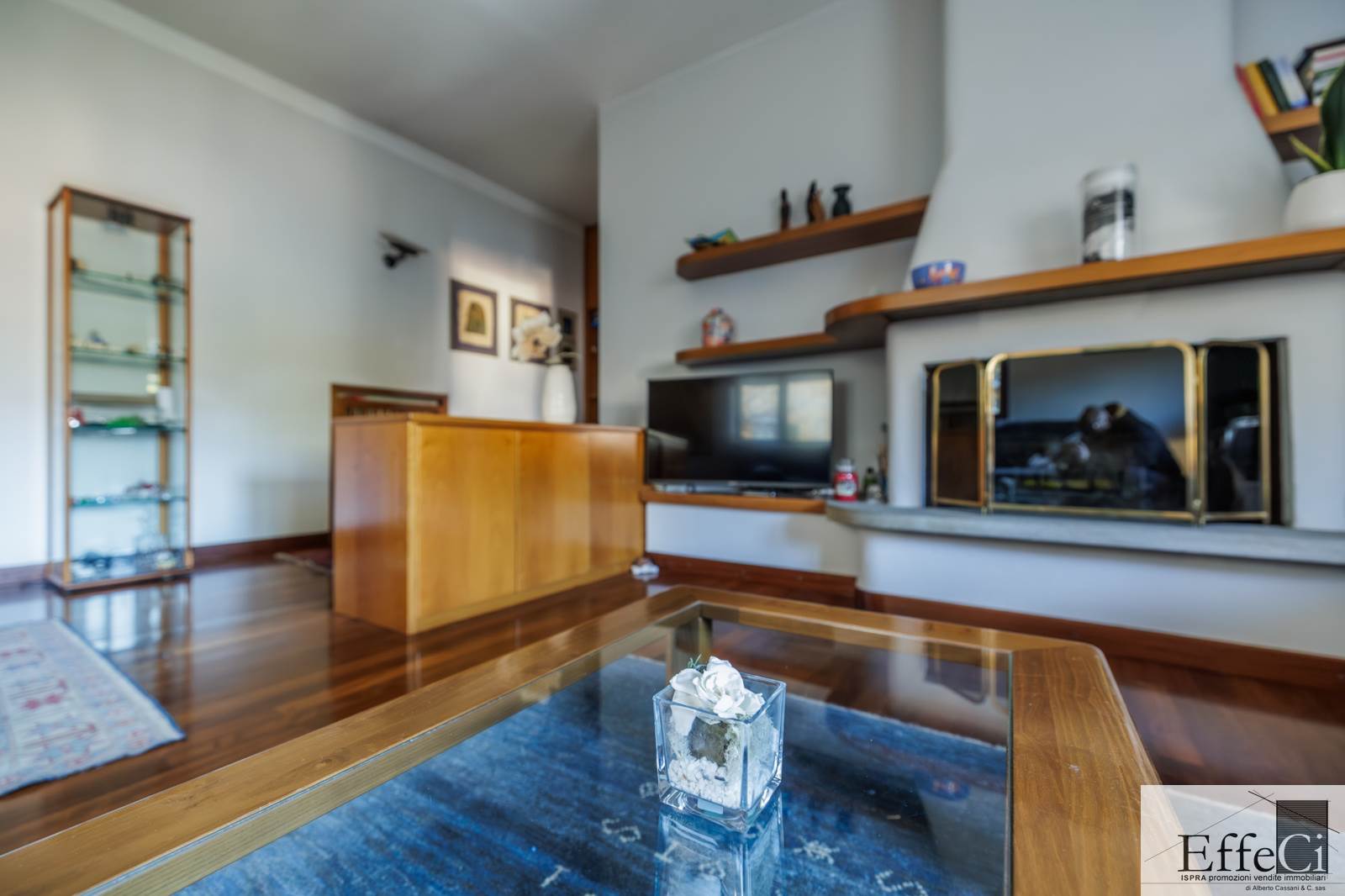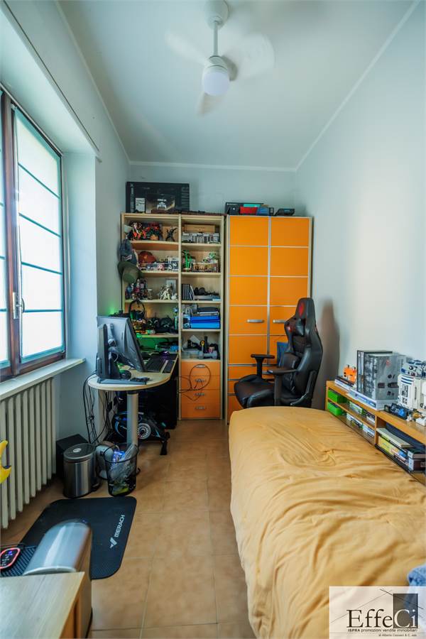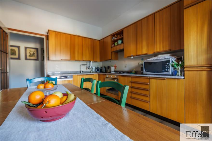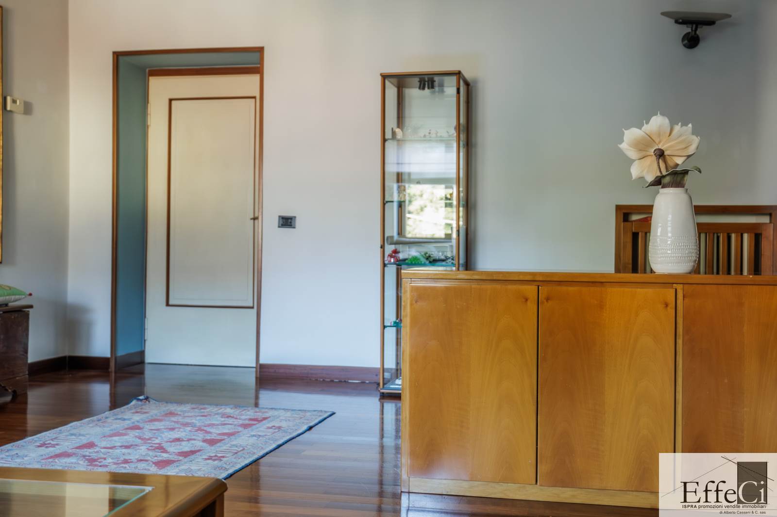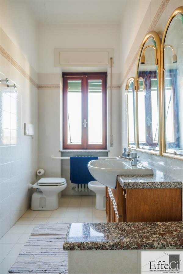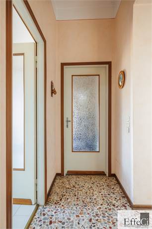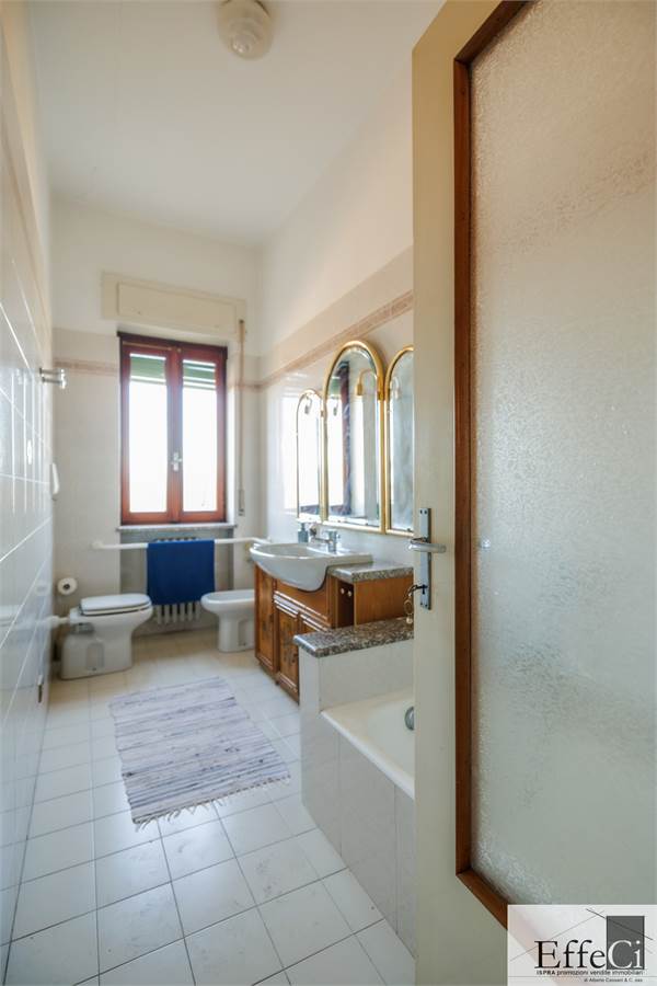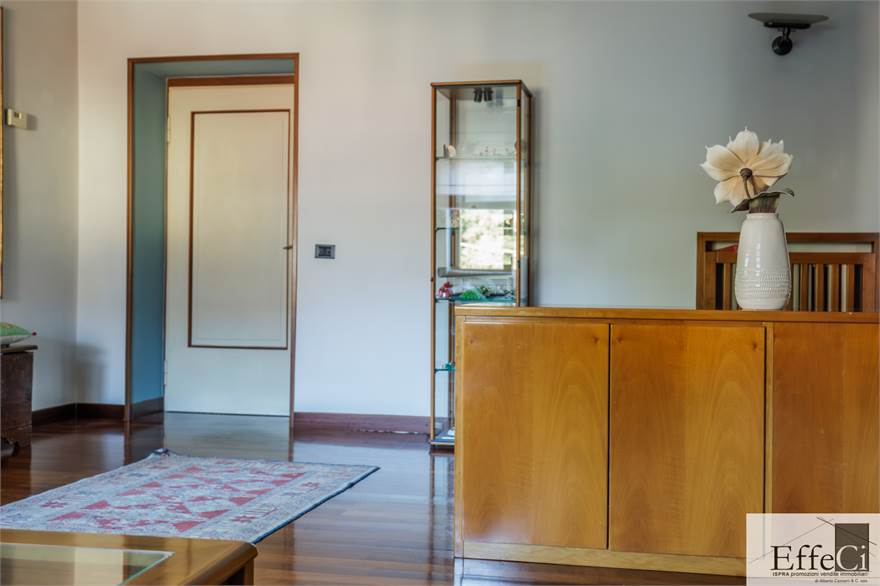 Il piano terra presenta una distribuzione interna analoga al piano superiore, comprensiva dei due locali separati ad uso studio e camera, con finiture originali anni ’75/80.