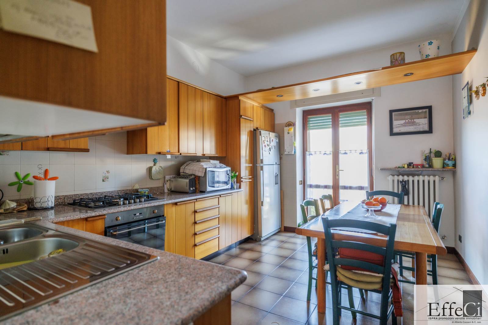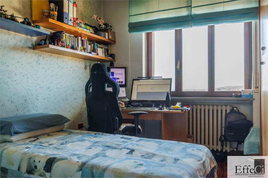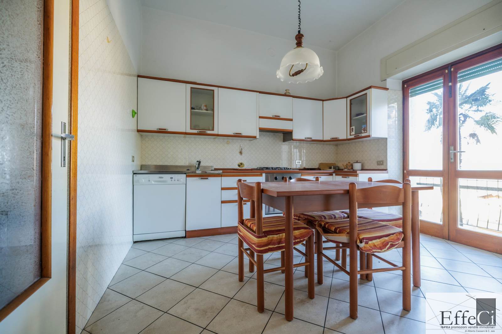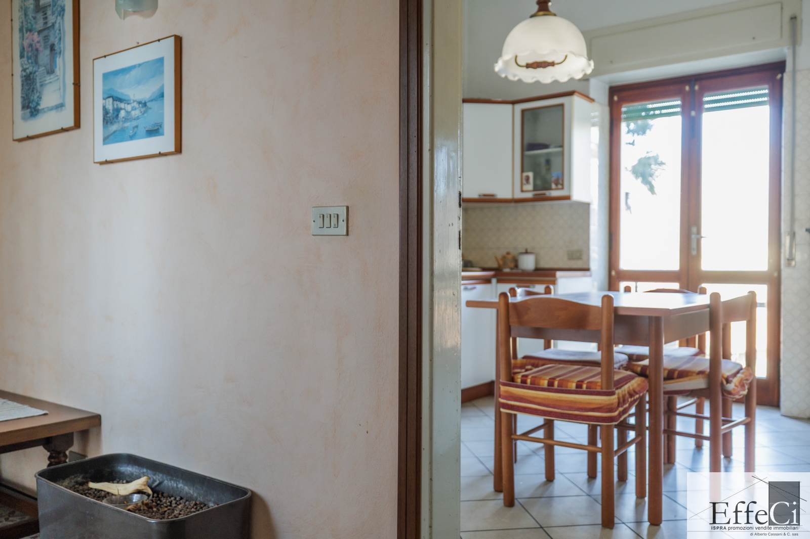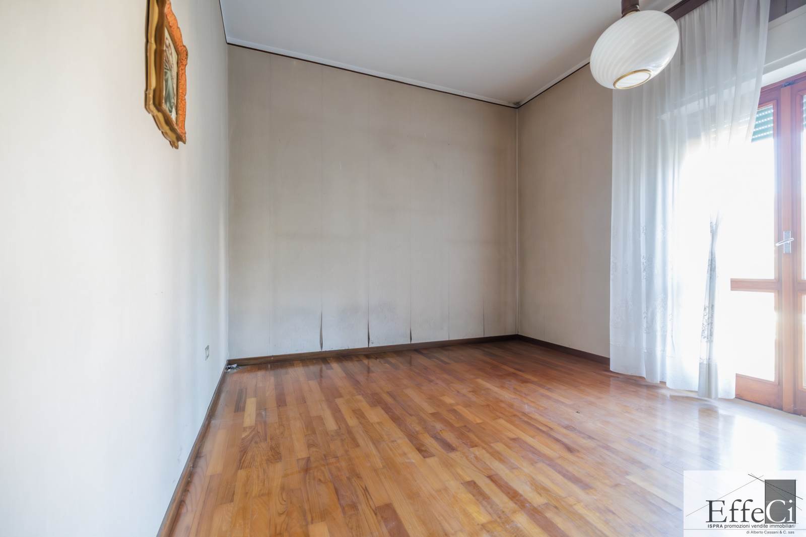 Il piano terra presenta una distribuzione interna analoga al piano superiore, comprensiva dei due locali separati ad uso studio e camera, con finiture originali anni ’75/80.