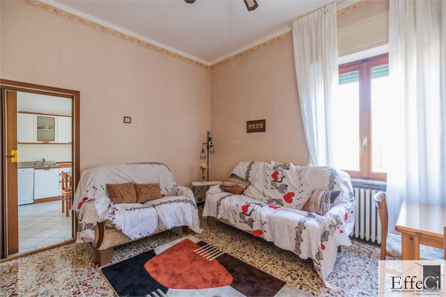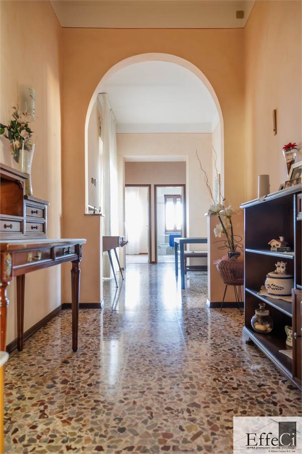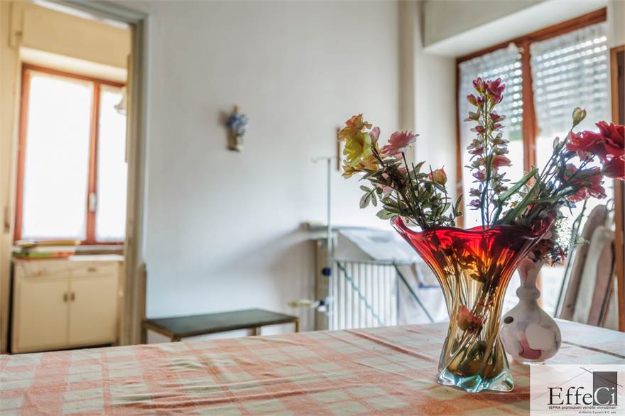 L’appartamento al piano primo, attualmente abitato, è composto da ingresso, cucina abitabile, due camere da letto, bagno e ripostiglio. Un ampio balcone che si sviluppa su due lati regala una vista aperta e suggestiva. Sullo stesso piano, ma separati dall’atrio d’ingresso, si trovano due ulteriori locali adibiti a studio e camera. Questo livello è stato ristrutturato nel 2000 per quanto riguarda impianto elettrico, riscaldamento, serramenti e tetto.