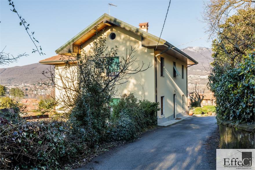 In posizione dominante e panoramica, con incantevole vista lago e monti, proponiamo villa indipendente disposta su due livelli oltre piano seminterrato, composta da due appartamenti completamente indipendenti a livello impiantistico, ideale anche per due nuclei familiari.
