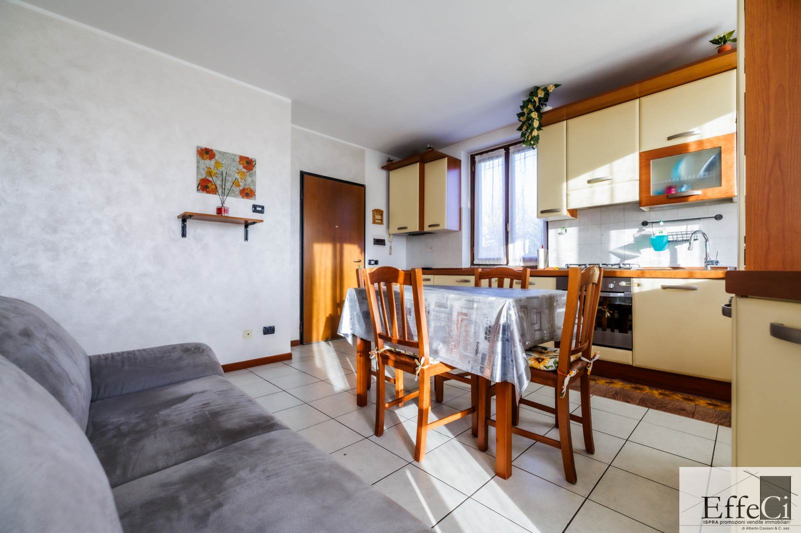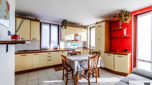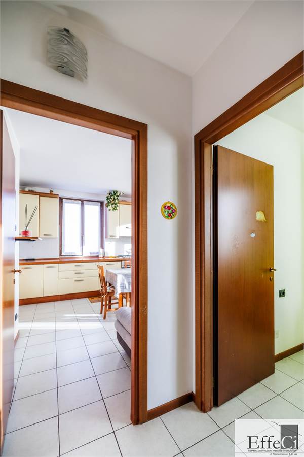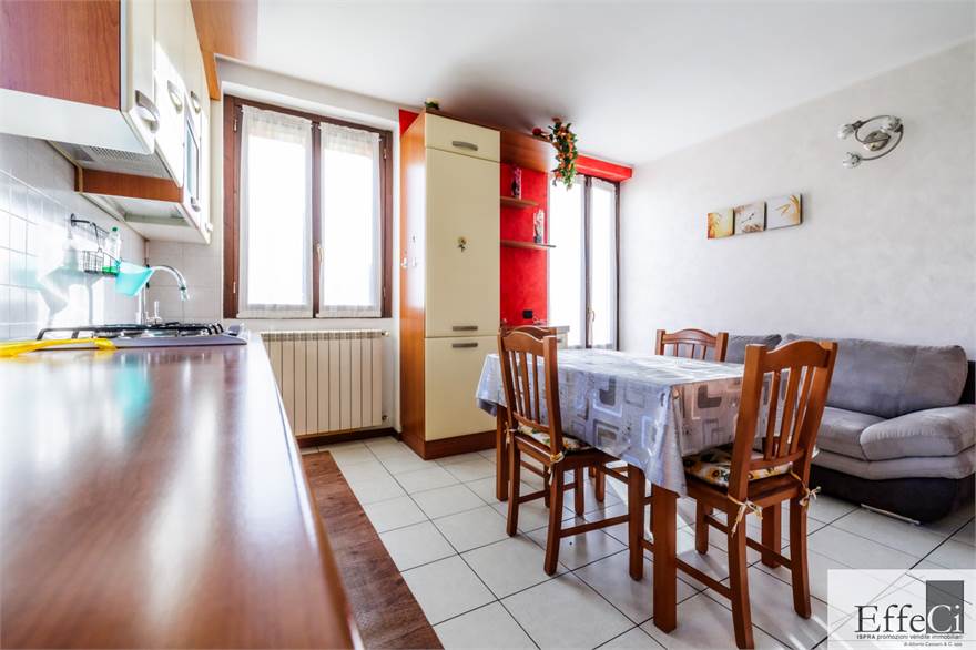 Vicino ai principali servizi, appartamento in piccolo complesso immobiliare posto al primo ed ultimo piano, libero su tre lati e composto da soggiorno con cucina a vista e terrazzo, disimpegno, due camere e bagno. Al piano terra completa la proprietà due posti auto scoperti. L'immobile si trova in buone condizioni con rivestimenti in ceramica, serramenti in legno con vetrocamera doppia e viene venduto arredato. Nessuna spesa condominiale. Ottimo anche come investimento.