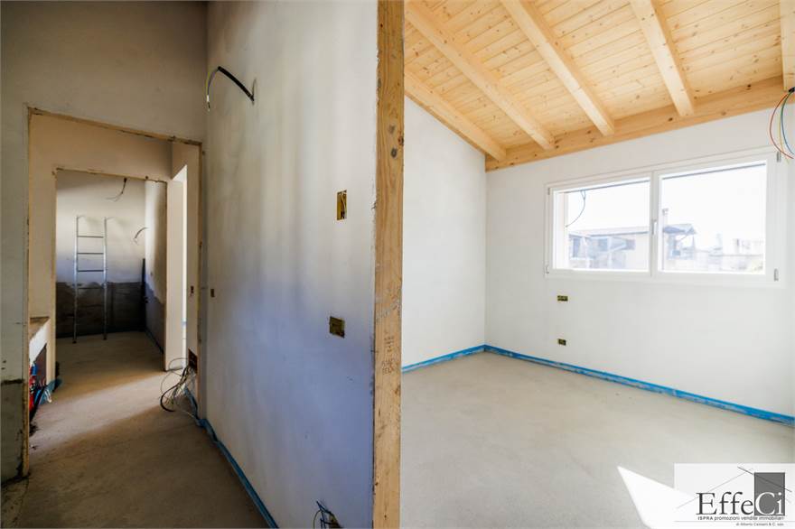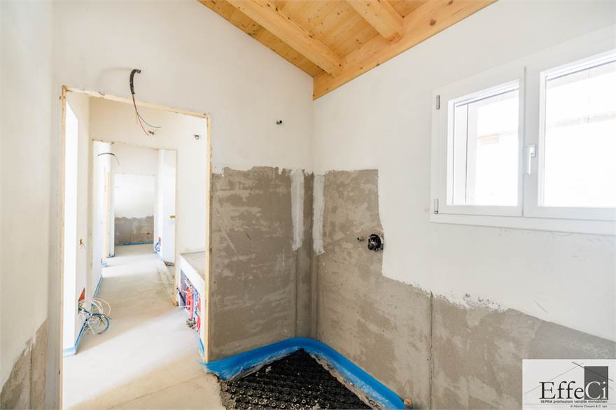 Attraverso una scala interna si accede al primo piano, composto da due camerette, un bagno con doccia e una spaziosa camera matrimoniale dotata di bagno privato e guardaroba, pensata per garantire il massimo comfort e privacy. Ogni villetta dispone inoltre di box singolo con basculante automatizzata e locale tecnico, oltre a due posti auto privati esclusivi per abitazione. Dal punto di vista impiantistico e delle finiture, le soluzioni sono progettate per offrire efficienza energetica e qualità abitativa: pavimentazione in gres porcellanato di prima scelta, pompa di calore elettrica aria-acqua per la climatizzazione, impianto radiante a pavimento a bassa temperatura, serbatoio di accumulo per il riscaldamento da 100 litri, bollitore per acqua calda sanitaria da 300 litri e impianto fotovoltaico da circa 6 kW. Le ville saranno pronte entro 40 giorni dalla consegna di pavimenti e rivestimenti, offrendo così tempi certi e programmabili.