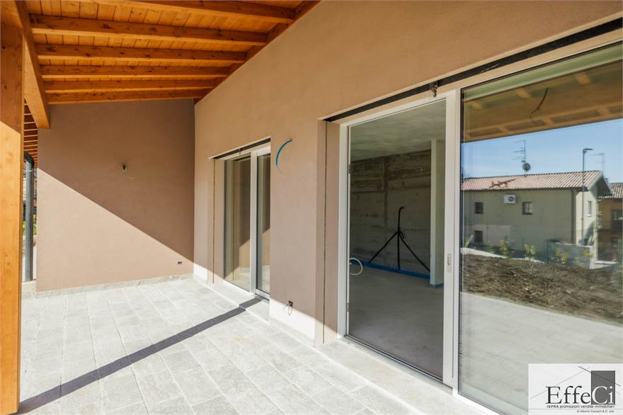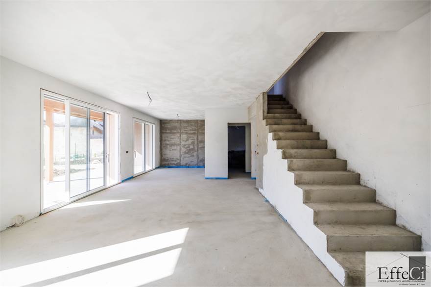 Le abitazioni si sviluppano su due livelli e sono circondate da area verde privata, perfetta per momenti di relax all’aperto, cene estive sotto il portico o per far giocare i bambini in totale sicurezza. Al piano terra troviamo un ampio e luminoso soggiorno con cucina open-space, valorizzato da tre grandi porte finestre che affacciano direttamente sul portico e sul giardino, creando una splendida continuità tra interno ed esterno. Completano il piano un antibagno, un bagno di servizio dove è possibile ricavare una comoda lavanderia .