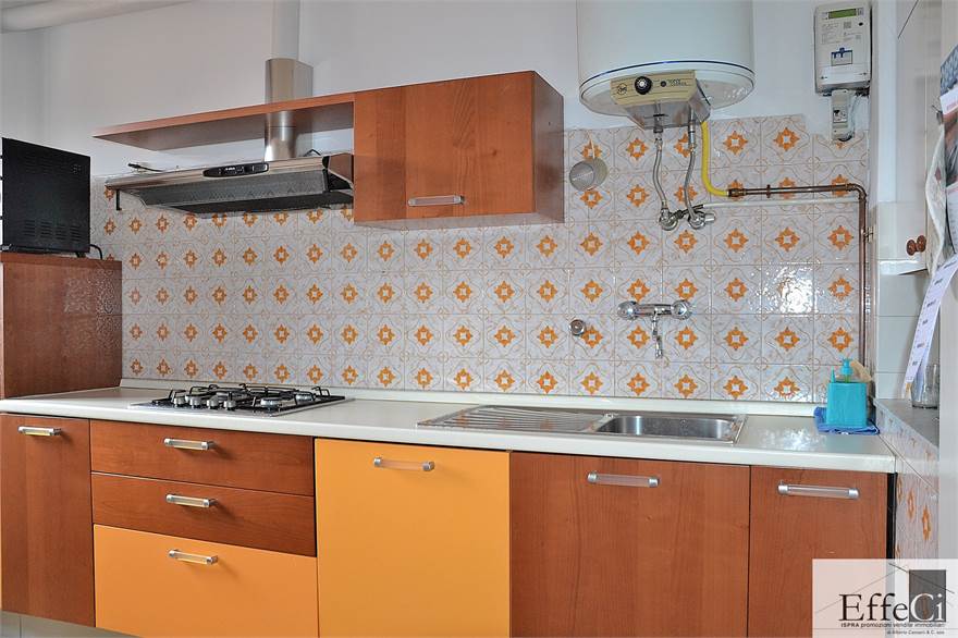 L’immobile è composto da ingresso, soggiorno, cucina abitabile, disimpegno, camera matrimoniale, cameretta e bagno finestrato con doccia e vasca.
