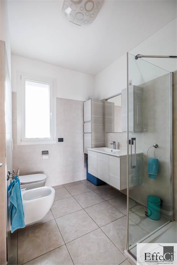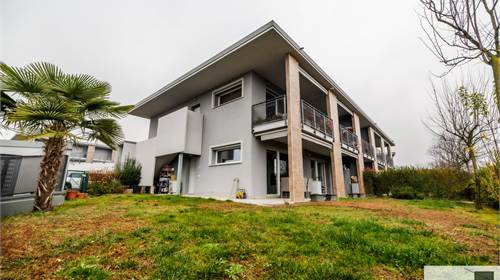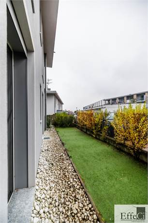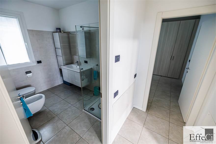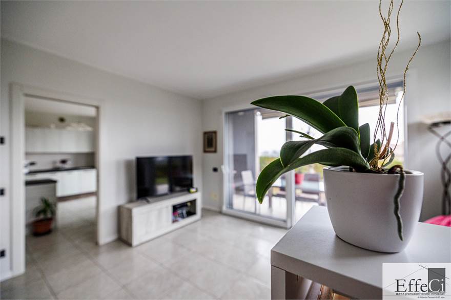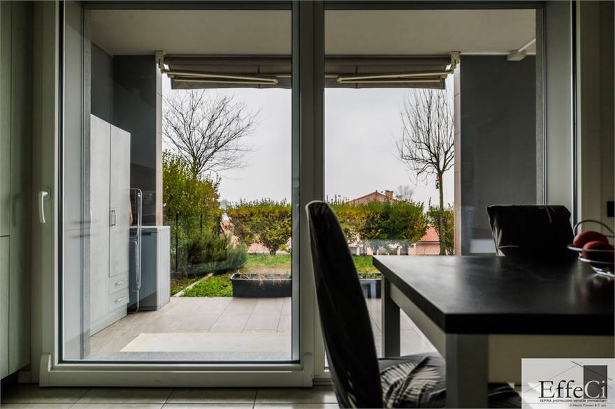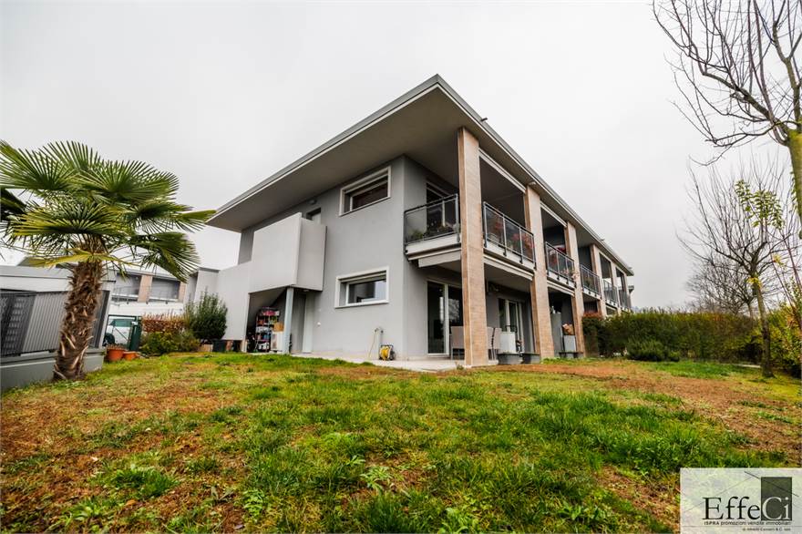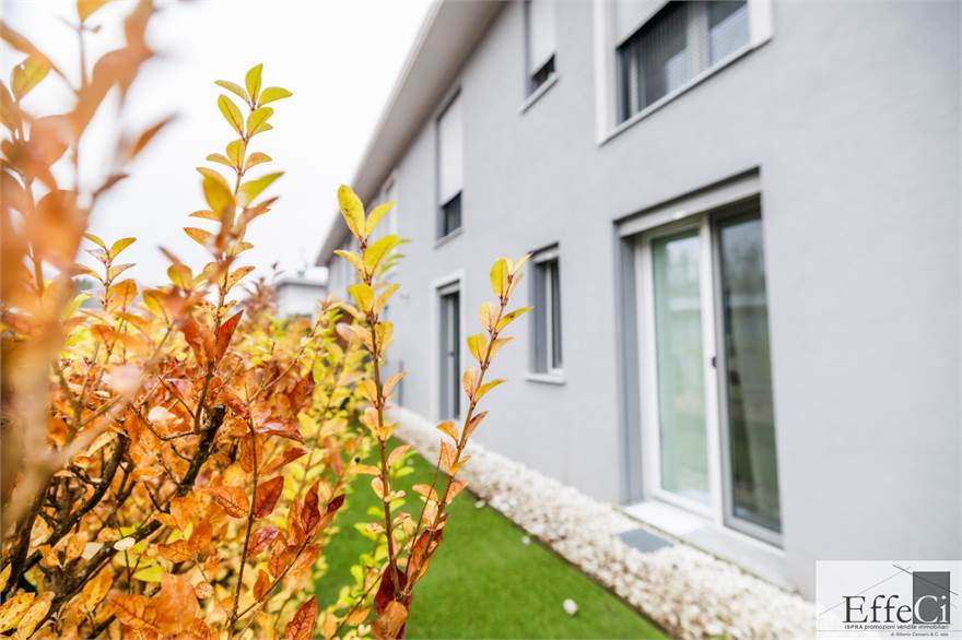 L’abitazione è composta da soggiorno e cucina abitabile con affaccio sul portico, ripostiglio, camera matrimoniale con bagno en suite, seconda camera ed ulteriore bagno. Completano la proprietà autorimessa, posto auto esclusivo e cantina .La costruzione è orientata al contenimento energetico e dotata di riscaldamento a pavimento con pompa di calore, impianto fotovoltaico, cappotto termico interno ed esterno, serramenti in PVC con doppio vetro, tapparelle elettriche, climatizzazione in pompa di calore, tende da sole esterne automatizzate, zanzariere e impianto di antifurto. Finiture di qualità con rivestimenti in ceramica e sanitari sospesi. Il complesso immobiliare dispone di ampio spazio verde comune, ideale per famiglie. Ottima esposizione e posizione.