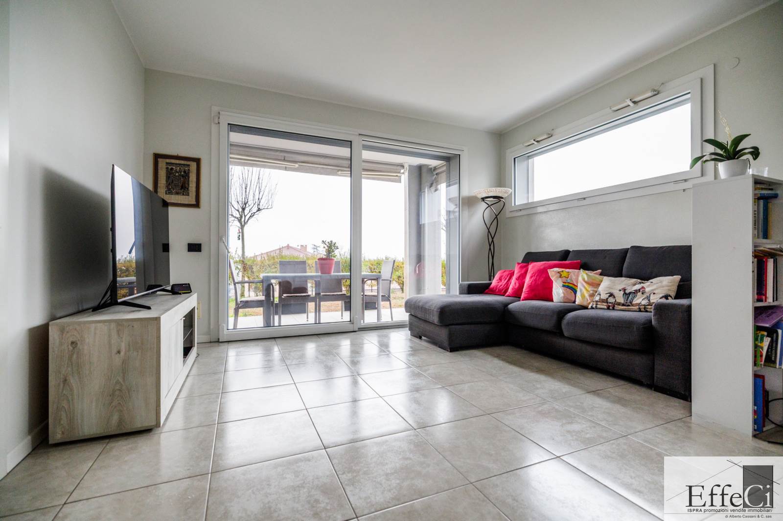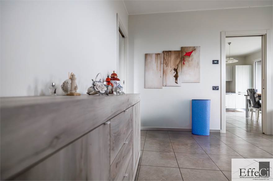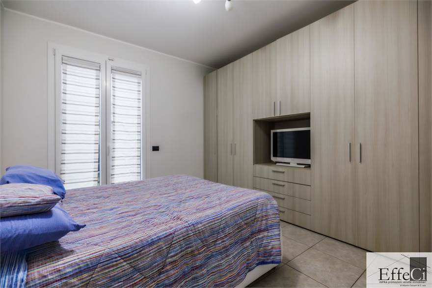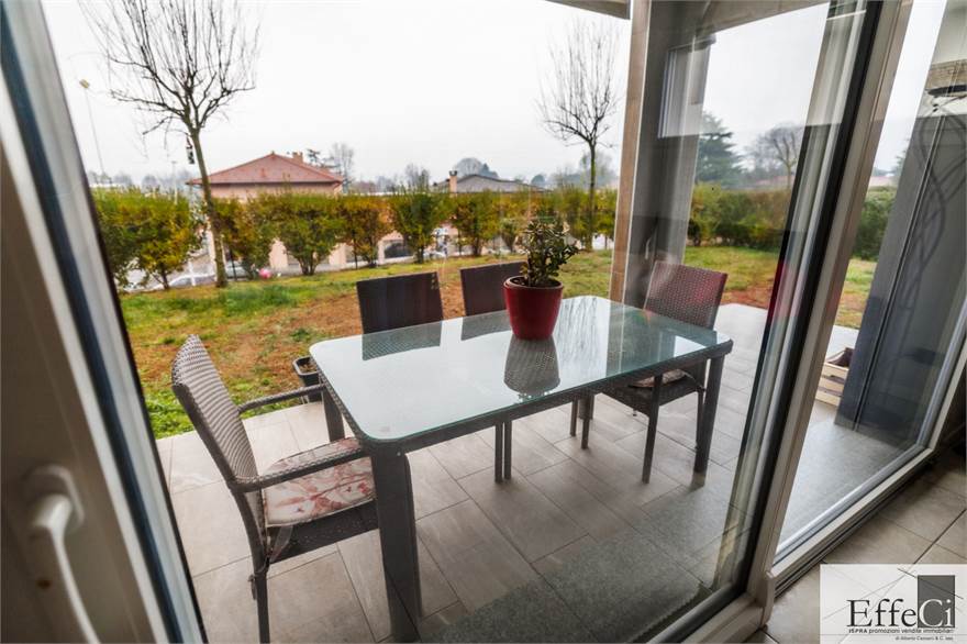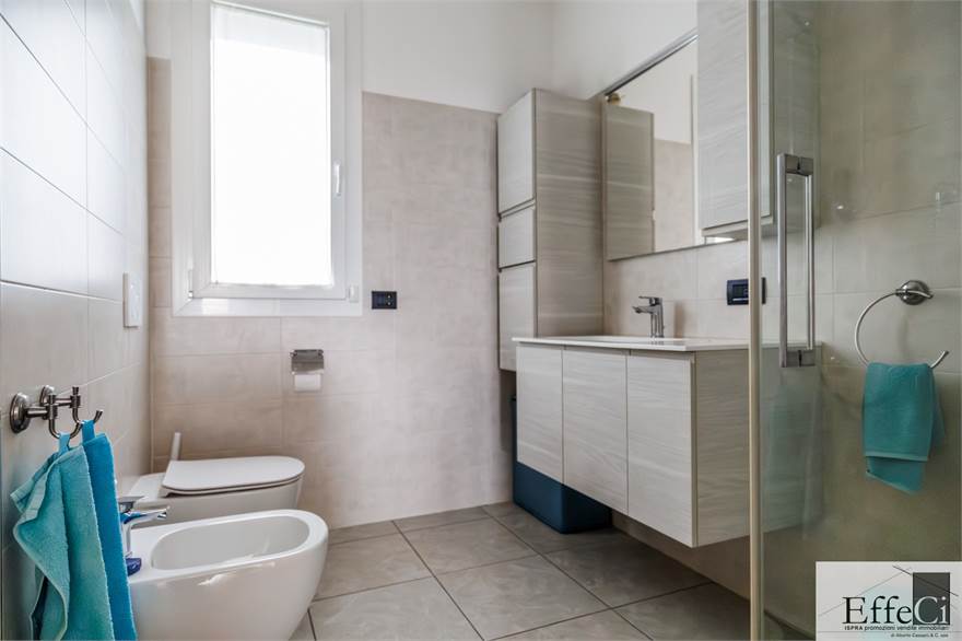 L’abitazione è composta da soggiorno e cucina abitabile con affaccio sul portico, ripostiglio, camera matrimoniale con bagno en suite, seconda camera ed ulteriore bagno. Completano la proprietà autorimessa, posto auto esclusivo e cantina .La costruzione è orientata al contenimento energetico e dotata di riscaldamento a pavimento con pompa di calore, impianto fotovoltaico, cappotto termico interno ed esterno, serramenti in PVC con doppio vetro, tapparelle elettriche, climatizzazione in pompa di calore, tende da sole esterne automatizzate, zanzariere e impianto di antifurto. Finiture di qualità con rivestimenti in ceramica e sanitari sospesi. Il complesso immobiliare dispone di ampio spazio verde comune, ideale per famiglie. Ottima esposizione e posizione.