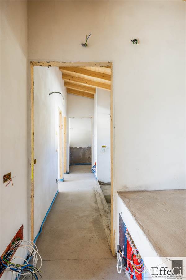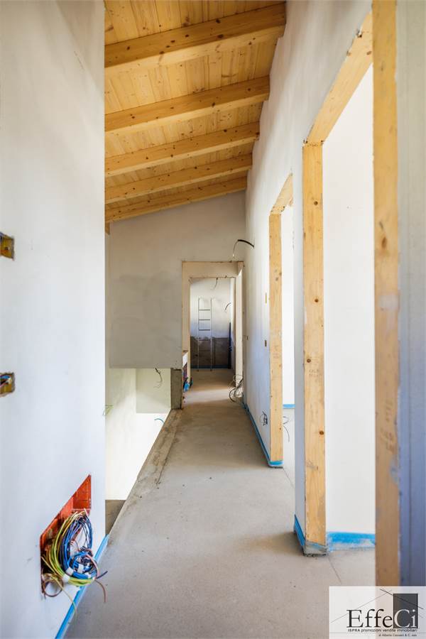 Attraverso una scala interna si accede al primo piano, composto da due camerette, un bagno con doccia e una spaziosa camera matrimoniale dotata di bagno privato e guardaroba, pensata per garantire il massimo comfort e privacy. Ogni villetta dispone inoltre di box singolo con basculante automatizzata e locale tecnico, oltre a due posti auto privati esclusivi per abitazione. Dal punto di vista impiantistico e delle finiture, le soluzioni sono progettate per offrire efficienza energetica e qualità abitativa: pavimentazione in gres porcellanato di prima scelta, pompa di calore elettrica aria-acqua per la climatizzazione, impianto radiante a pavimento a bassa temperatura, serbatoio di accumulo per il riscaldamento da 100 litri, bollitore per acqua calda sanitaria da 300 litri e impianto fotovoltaico da circa 6 kW. Le ville saranno pronte entro 40 giorni dalla consegna di pavimenti e rivestimenti, offrendo così tempi certi e programmabili.