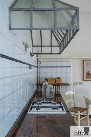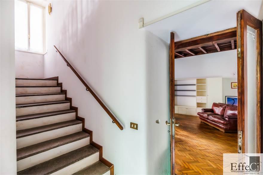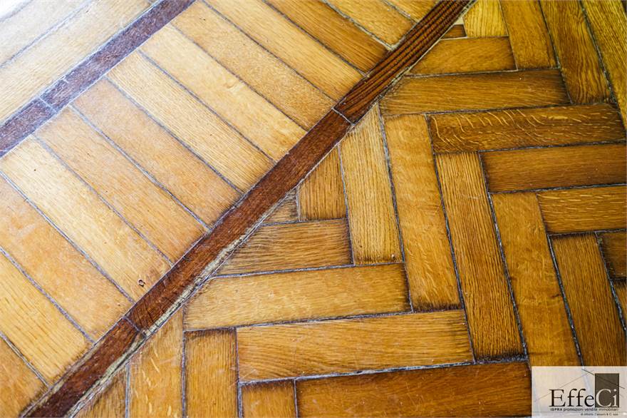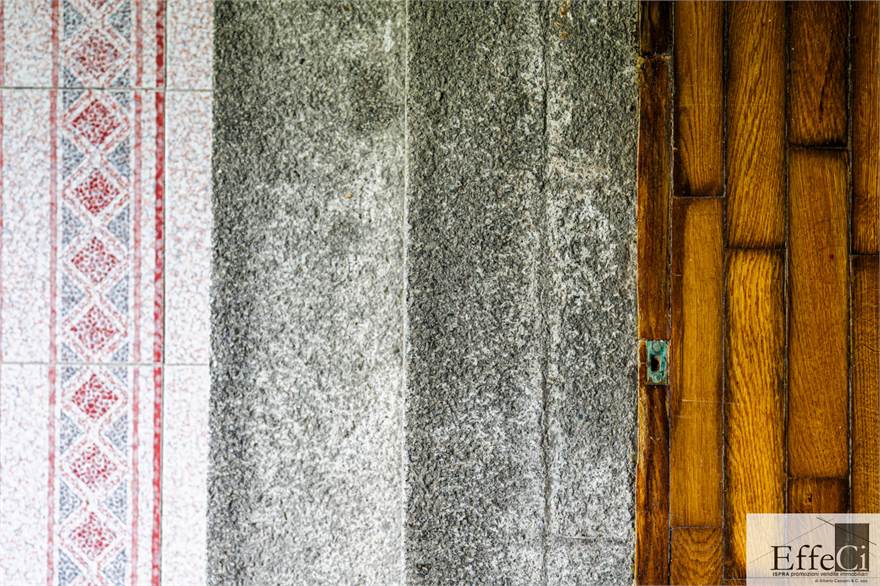 Le finiture d’epoca quali solai in legno con cassettoni a vista, pavimenti in parquet posato a lisca di pesce e rivestimenti in cemento decorato, conferiscono alla casa un’atmosfera unica e autentica.