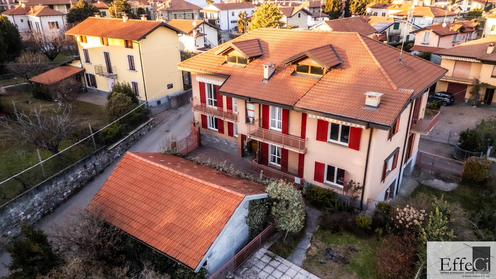 In posizione tranquilla, nel centro del Paese e a 5 minuti a piedi dal lago Maggiore, proponiamo ampio caseggiato indipendente con area verde privata oltre a fabbricato accessorio, disposto su tre livelli e seminterrato. L'immobile è attualmente suddiviso in cinque unità immobiliari: due appartamenti uno al piano terra ed uno al piano primo composti da ingresso, soggiorno con camino e balcone, cucina abitabile, disimpegno, due camere con balcone e bagno; due appartamenti uno al piano terra ed uno al piano primo composti da ingresso, soggiorno con balcone, cucina, disimpegno, due camere con balcone e bagno. Al piano secondo ampio sottotetto con travi a vista recuperabile ai fini abitativi con la legge regione del recupero del sottotetto. Al piano seminterrato, due autorimesse, due ripostigli e locale caldaia. Il fabbricato accessorio è disposto su un unico livello e composto da quattro ripostigli. Il fabbricato principale è stato edificato negli anni '70 con caratteristiche costruttive e finiture risalente a quell'epoca. Il tetto è stato rifatto nel 2001 ed è coibentato. Ideale anche per due nuclei familiari o per investimento come b&b o affitti a breve e lunga durata.