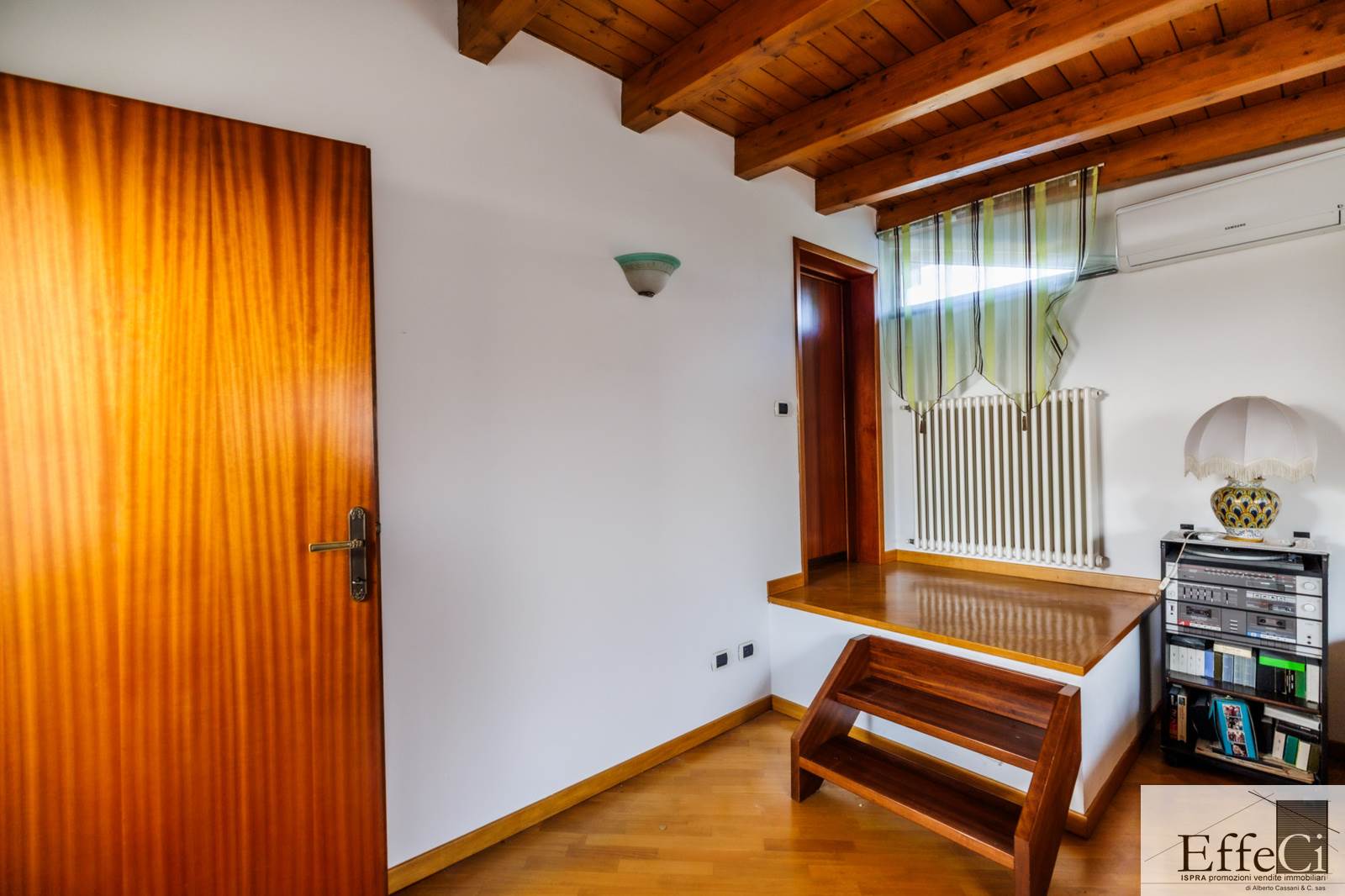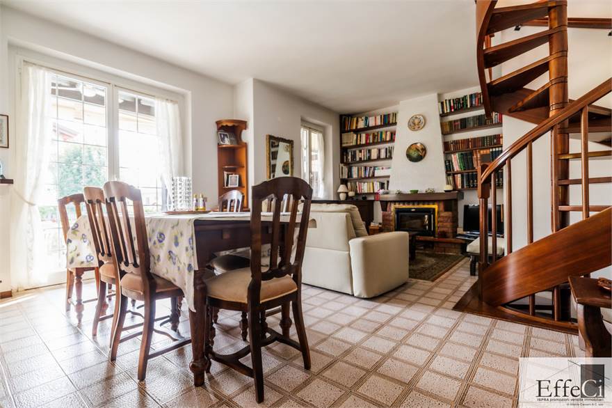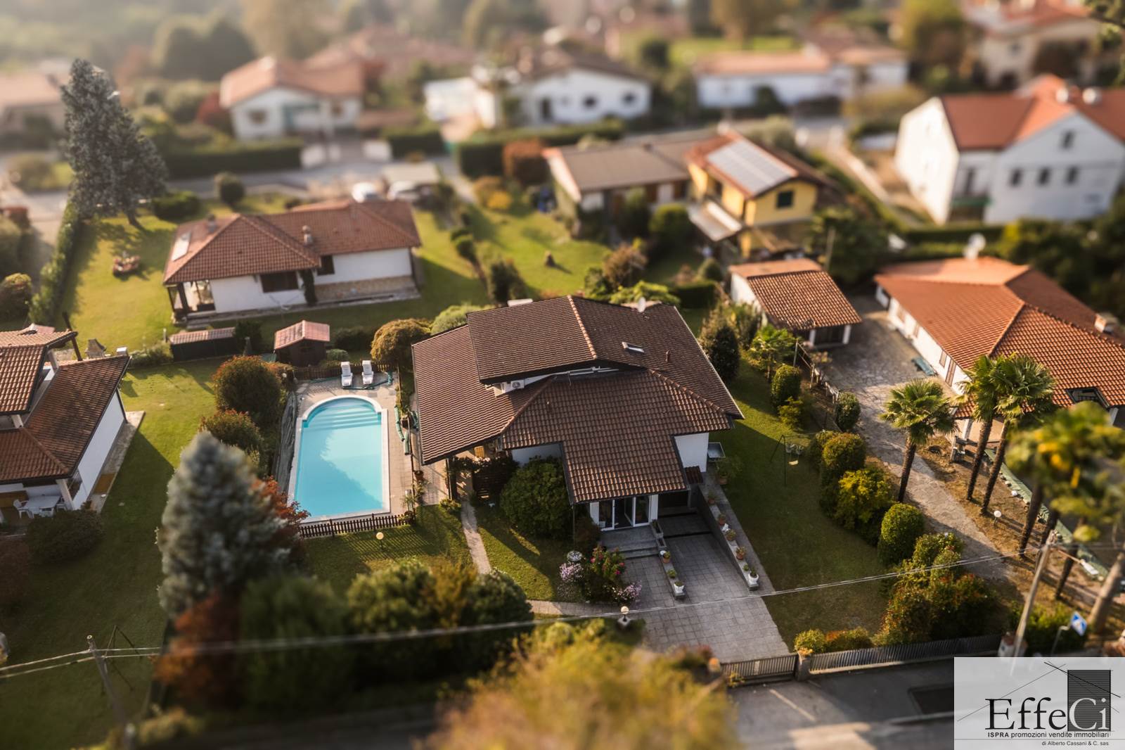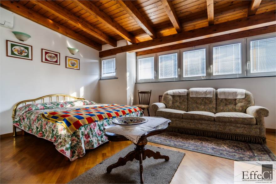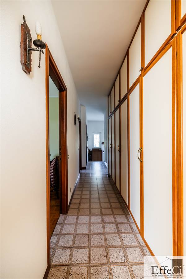 In zona verde e non distante dai servizi e dal lago, ampia villa indipendente con giardino ben piantumato e piscina e disposta su tre livelli. Al piano terra ingresso, soggiorno con camino e portico, cucina abitabile, disimpegno con armadi a muro, tre camere e doppi servizi. al piano primo mansardato con travi a vista, spaziosa camera con bagno privato e cabina armadio. al piano interrato, autorimessa, locale lavanderia, locale caldaia e cantina. L'immobile si trova in buone condizioni con serramenti in alluminio con vetrocamera doppia, rivestimenti in ceramica nella zona giorno ed in parquet nella zona notte. Il piano primo è stato rivisto con la sostituzione e la coibentazione del tetto, la sostituzione degli impianti e dell'installazione della climatizzazione. Ottima esposizione. Il giardino è pianeggiante e ben usufruibile..