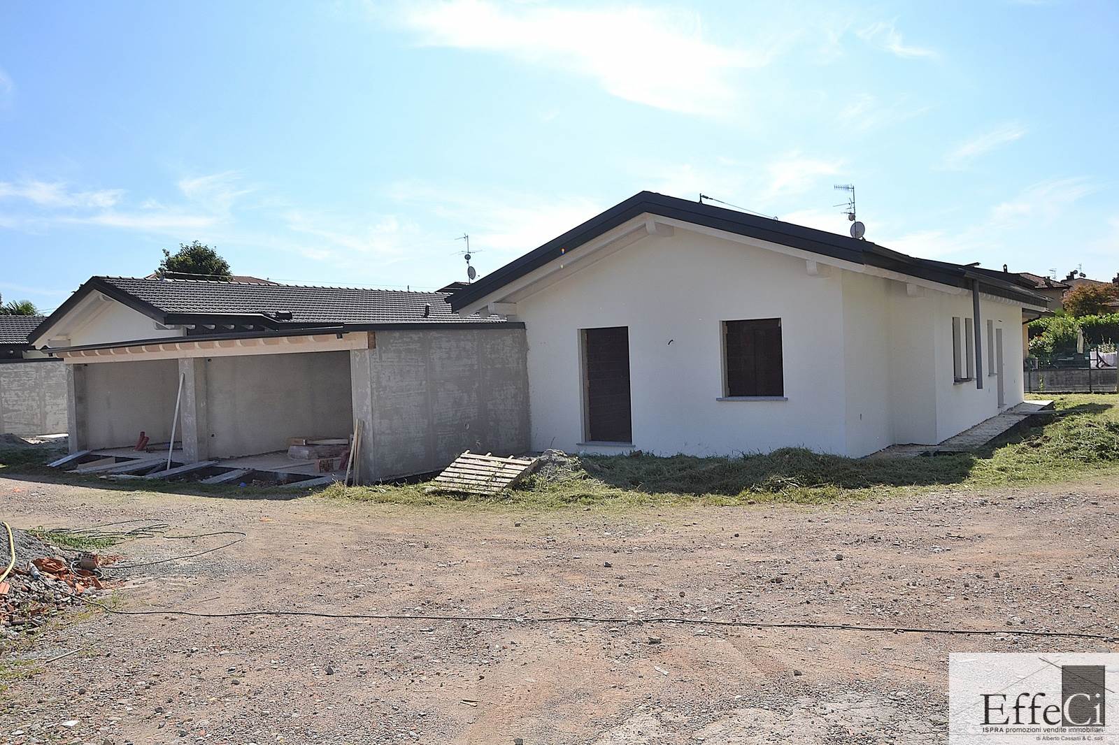 Sono disponibili 8 Ville così composte: ingresso, soggiorno, cucina abitabile con portico, due camerette, una camera matrimoniale con cabina armadio, due bagni, locale tecnico che da accesso direttamente al box doppio per larghezza. Le ville sono alimentate da pannelli fotovoltaici e pompa di calore con riscaldamento a pavimento, serramenti in PVC, pavimentazione in gres porcellanato a scelta. Vengono consegnate chiavi in mano , solo da tinteggiare internamente. Ottimo per chi ama tranquillità e indipendenza. Ti aspettiamo in ufficio per ulteriori informazioni.