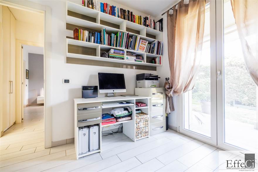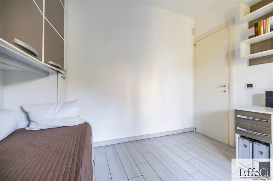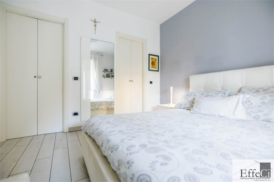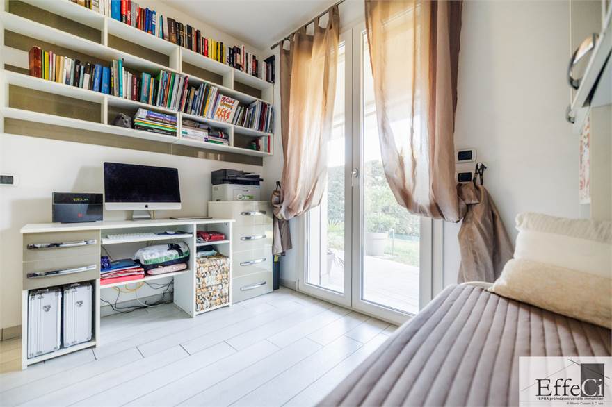 L'immobile è dotato di ogni confort, composto da soggiorno con cucina a vista con uscita sul portico che circonda il giardino privato dove godere di tranquillità e riservatezza, camera matrimoniale con cabina armadio doppia predisposta per un eventuale secondo bagno, cameretta, disimpegno e bagno con doccia.