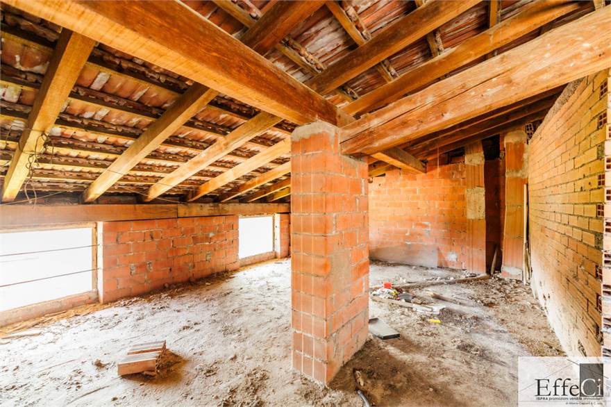 porzione di fabbricato ad uso residenziale disposto su due livelli oltre il piano sottotetto dove è possibile ricavare un' abitazione unica composta da ingresso, zona giorno, disimpegno, bagno per un totale di 115 mq al piano terra; disimpegno, quattro camere da letto, bagno, tre balconi per un totale di 115 mq; al piano sottotetto disponibili altri 57 mq. Tuttavia vista la dimensione del fabbricato stesso è possibile dividerlo in due unità abitative, una al piano terra ed una al piano primo oltre il sottotetto, composte ognuna da ingresso, soggiorno, cucina, disimpegno, due camere e bagno;